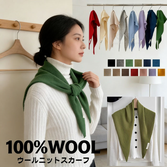 100%ウール 三角ストール ニット マフラー スカーフ ネックウォーマー スヌード 続々登場 ブラック ベージュ カーキ コーヒー ライトグレー グレー ライトグリーン グリーン ネイビー ブルー ピンク レッド パープル