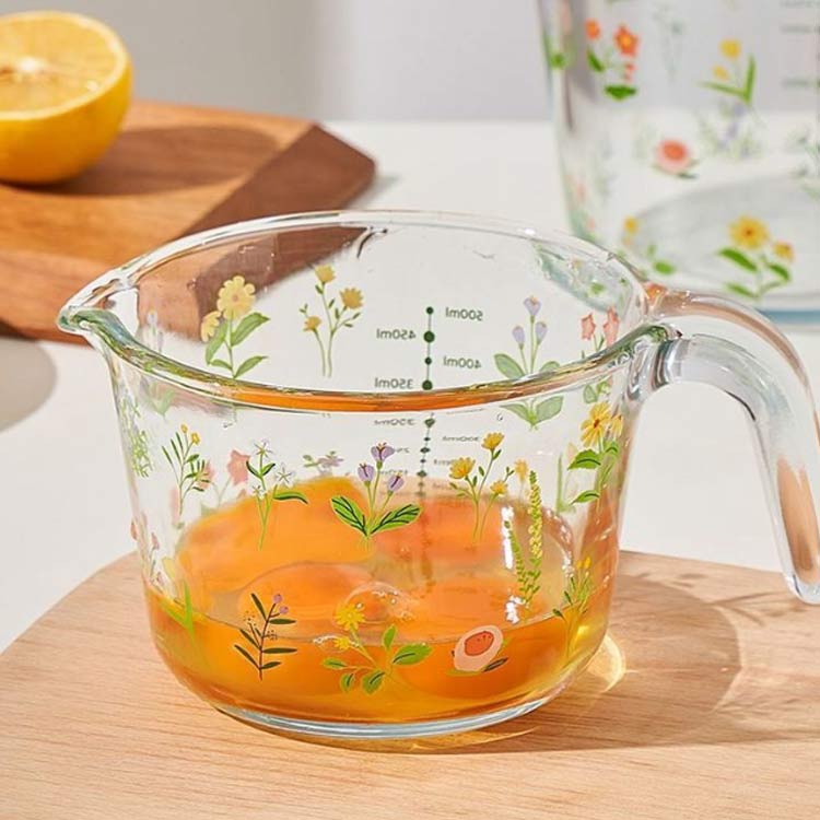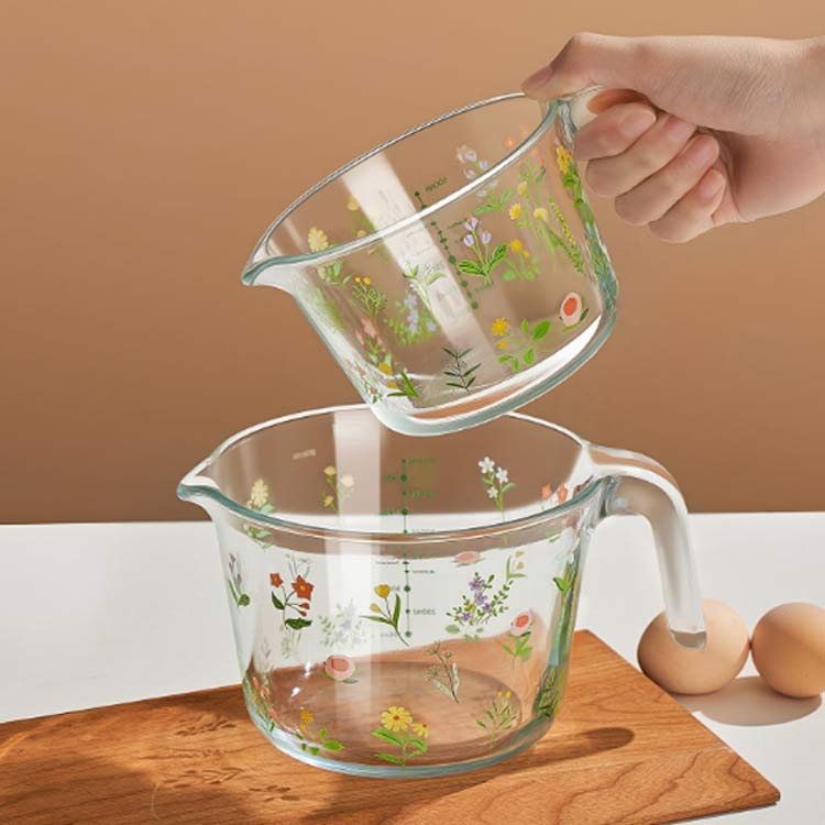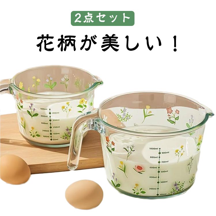 美しい花柄 耐熱ガラス 耐熱メジャーカ キッチン用品 食器 調理器具 早い者勝ち