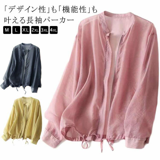 UVパーカー レディース 薄手 長袖 トップス パーカー 新作 ピンク イエロー グレー M(42.5-52.5KG) L(52.5-57.5KG) XL(57.5-62.5KG) 2XL(62.5-67.5KG) 3XL(67.5-75KG) 4XL(75-82.5KG)