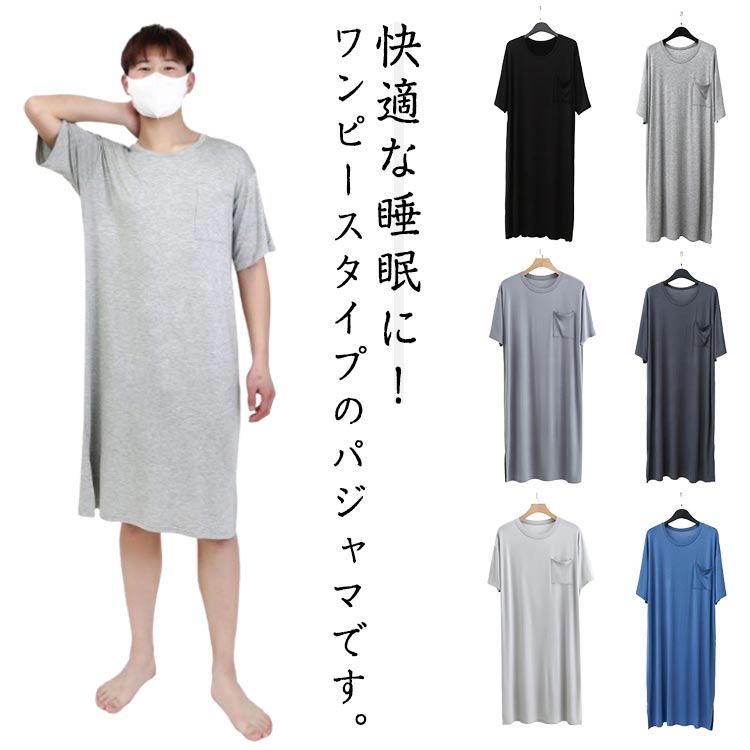 ルームワンピース メンズ ロング丈 パ メンズ ナイトウェア ルームウェア パジャマ 早い者勝ち ブラック ブルー ダークグレーA ライトグレーA ライトグレーB ダークグレーB L XL 2XL 3XL