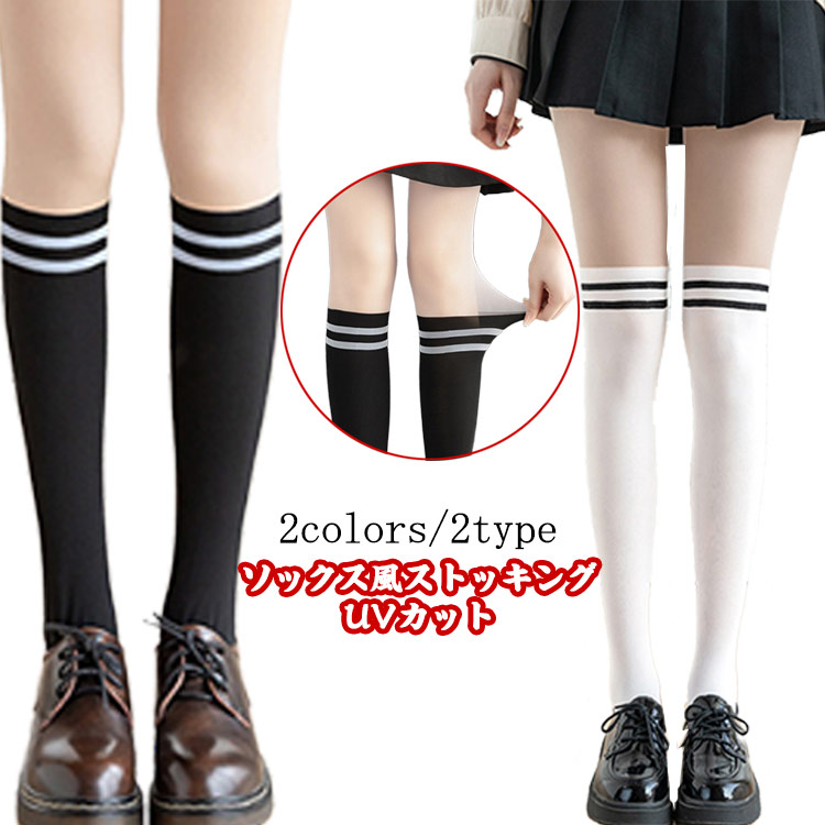 レギンス スポーツ用 レディース ゴル ゴルフ ウェア レディースウェア ソックス 超目玉商品 ブラック ホワイト ニーハイソックス風 ハイソックス風