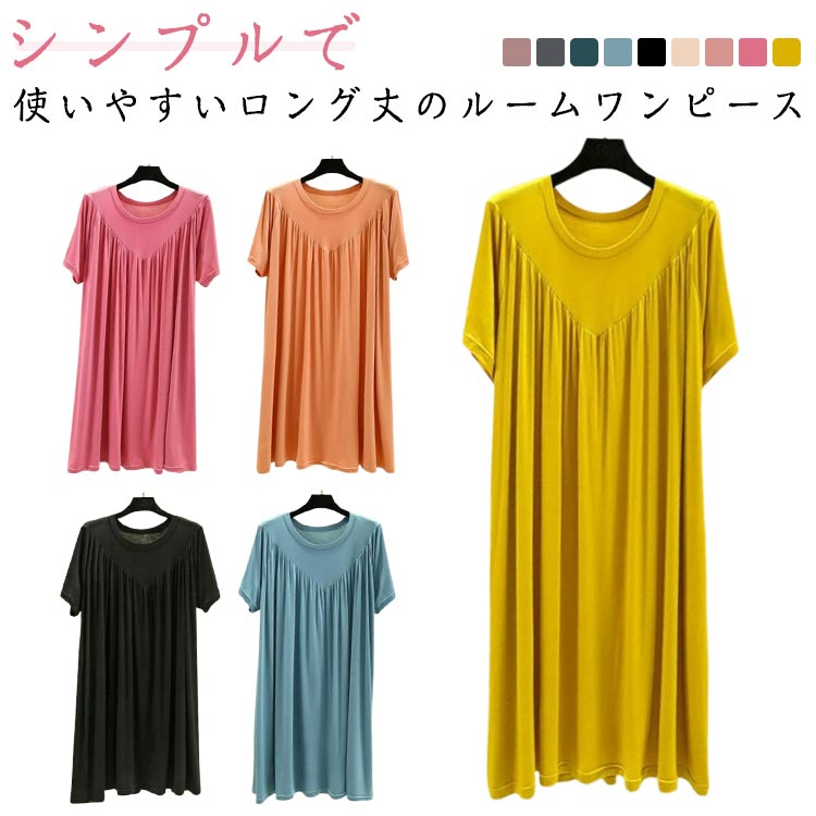 部屋着 マキシワンピース ルームワンピ ブラック ライトブルー オレンジ バラレッド ピンク イエロー ダークグレー ライトパープル ダークグリーン L XL