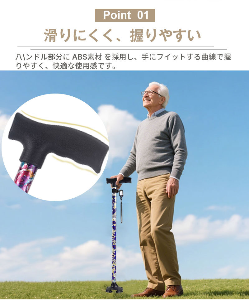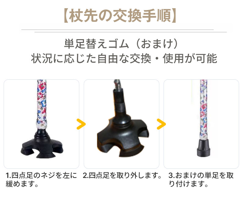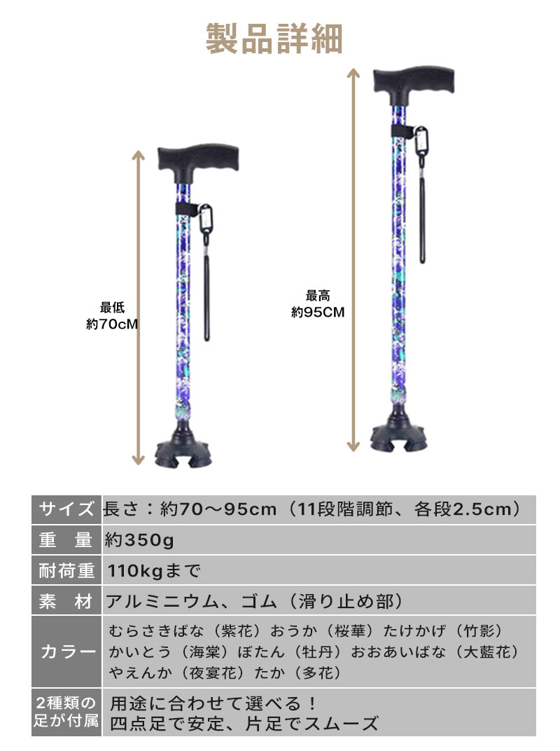 杖 4点杖 ステッキ 自立式 軽量 伸 むらさきばな おうか たけかげ かいとう ぼたん おおあいばな たか やえんか