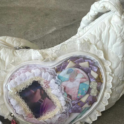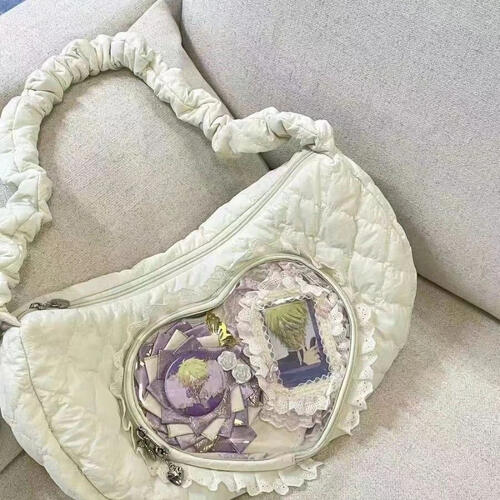 【在庫品のみ翌営業日配送】 レディース フリル ハート 窓付き 推し活 ショルダーバッグ クリア 韓国 ダウン カジュアル かわいい おしゃれ 大容量 コンサート ライブ イベント トレカ ぬいぐるみ 斜めがけ メッセンジャーバッグ Y2K お揃い トレンド ジッパー 痛バッグ