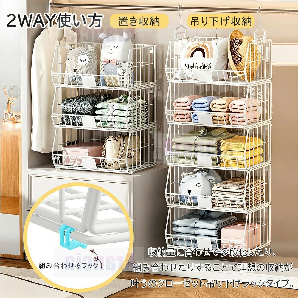 クローゼット 収納 吊り下げ 2段 3 ホワイト ブラック 1段 2段 3段 4段 5段