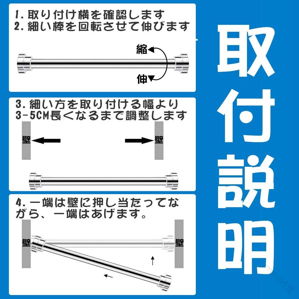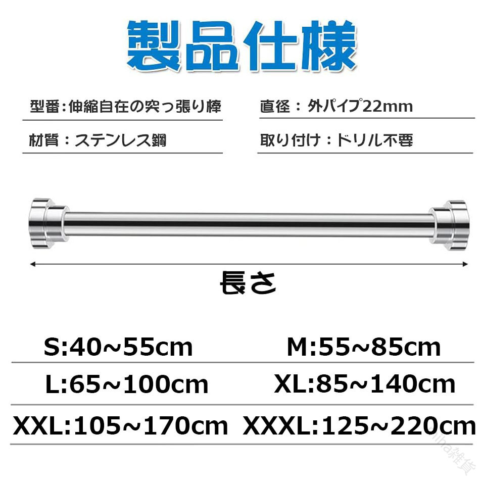 突っ張り棒 強力伸縮棒 ステンレス製 40~55cm 55~85cm 65~100cm 85~140cm 105~170cm 125~220cm