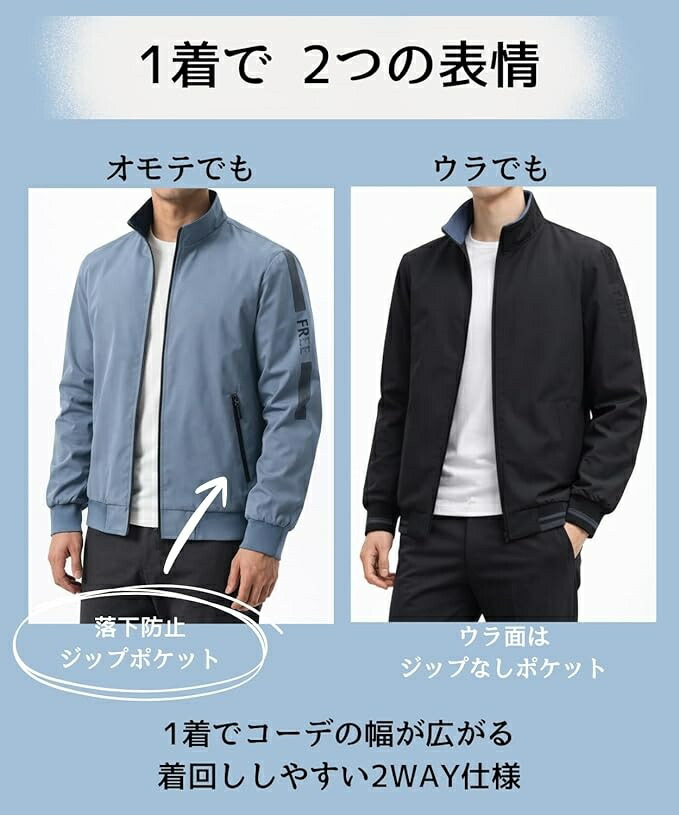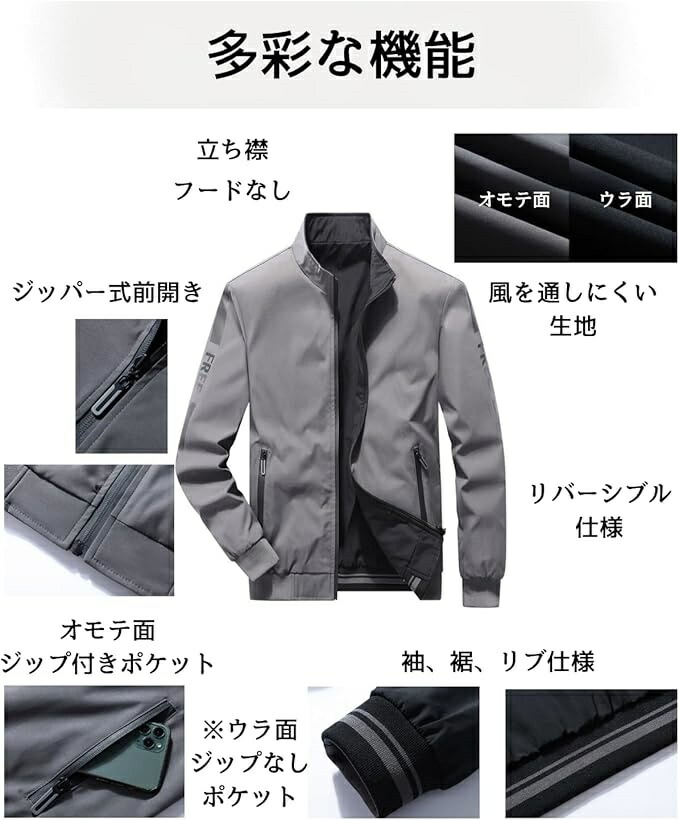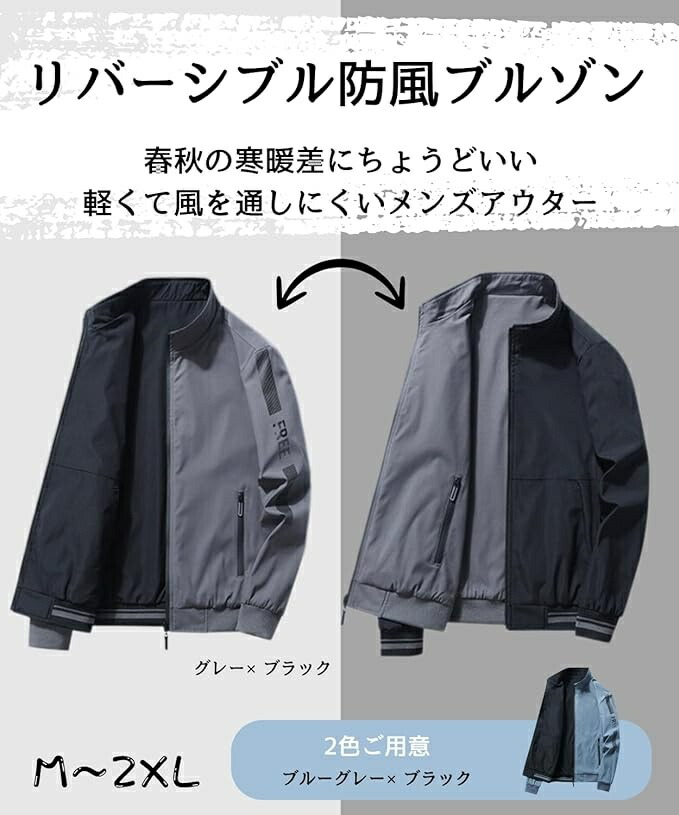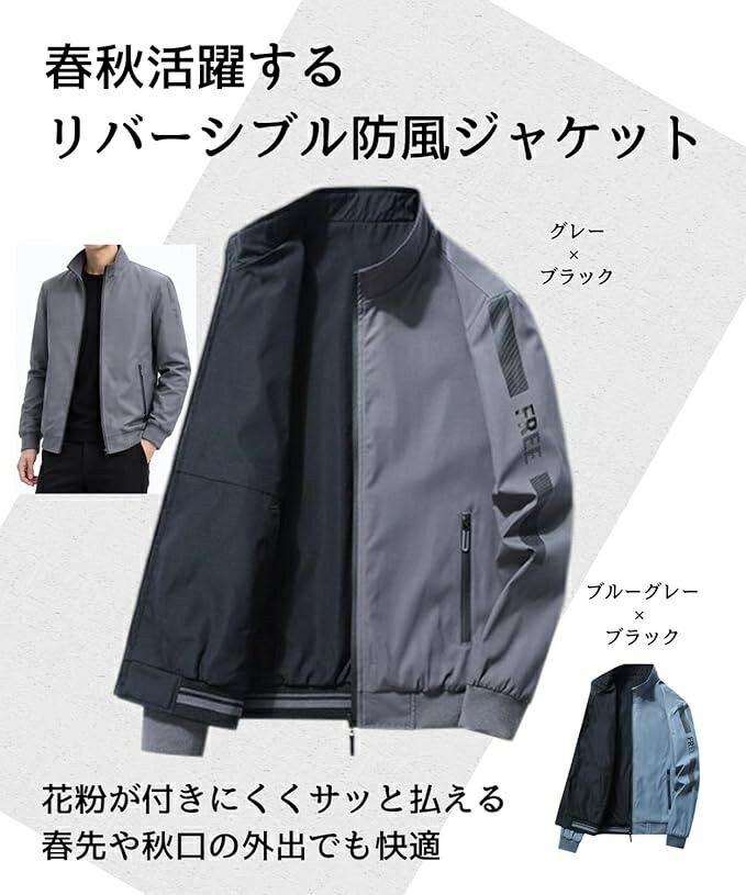 スプリングコート メンズ リバーシブル コート ジャケット 続々入荷中 グレー/ブラック ブルーグレー×ブラック カーキ M L XL 2XL 3XL 4XL 5XL