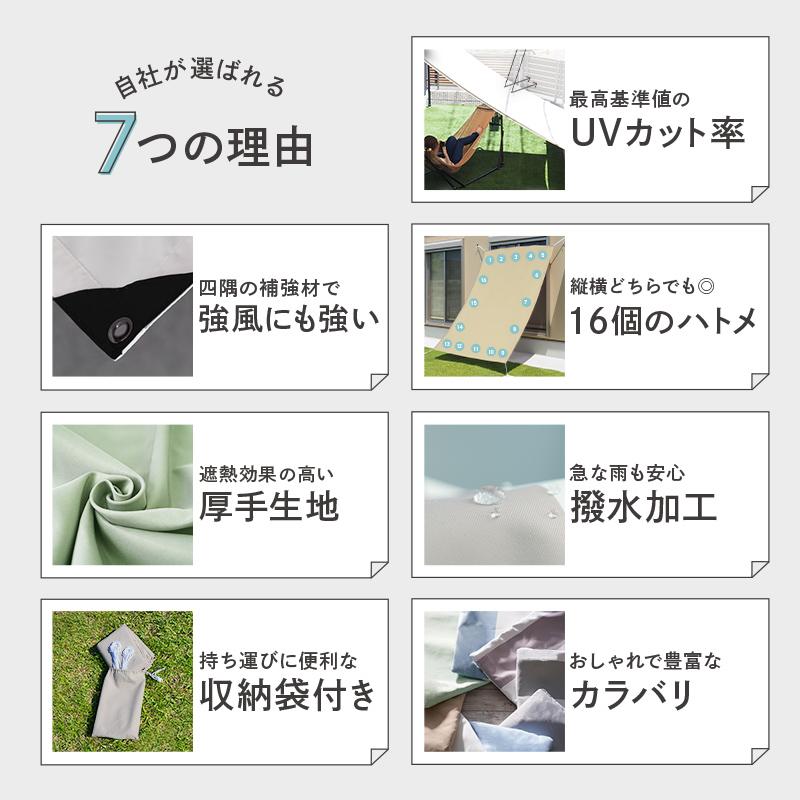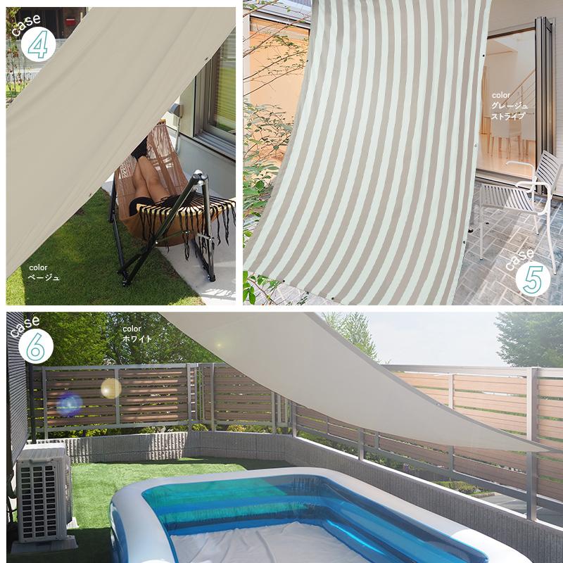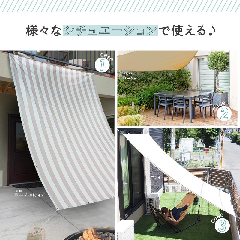 サンシェード 庭 日除け ベランダ 大 ベージュ グレージュストライプ ホワイト ピスタチオ ベビーブルー アッシュグリーンストライプ アッシュブルーストライプ グレー