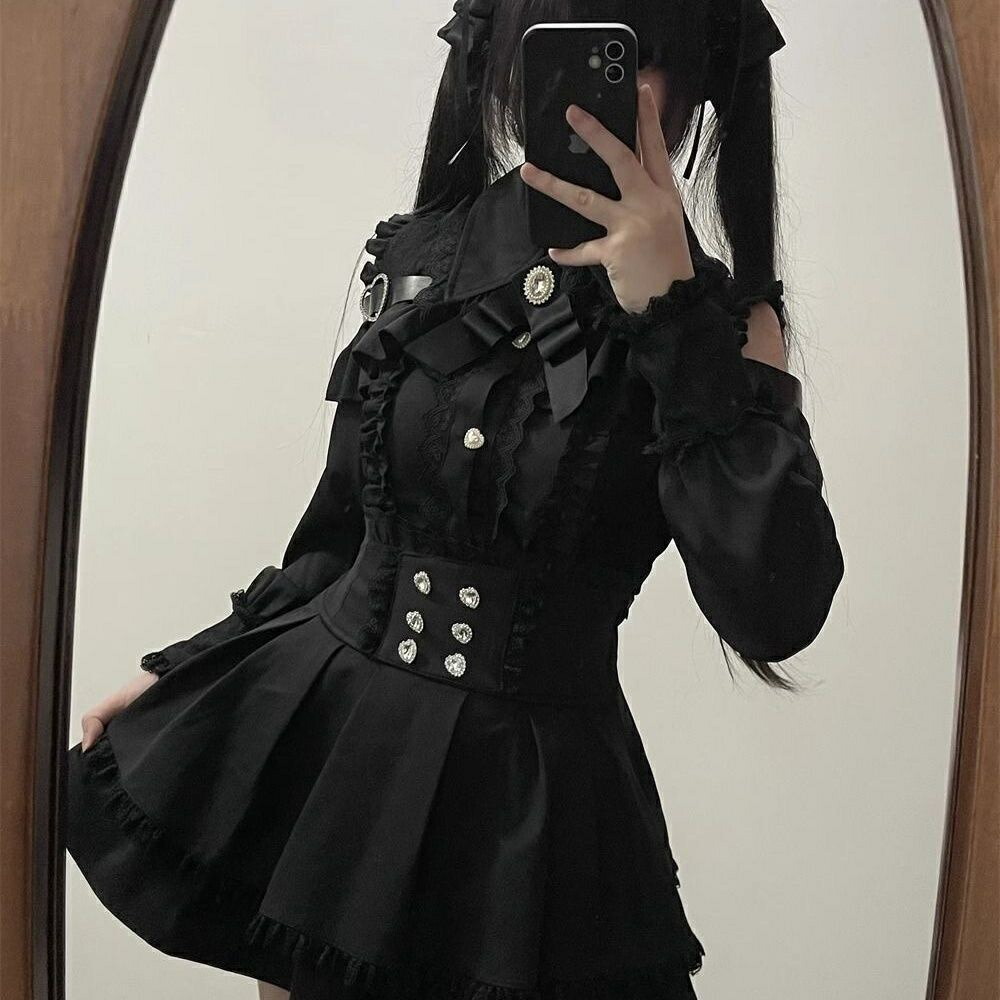 地雷系 オープンショルダー ワンピース レディースファッション 超目玉商品 ブルー ピンク ブラック ワインレッド S M L XL