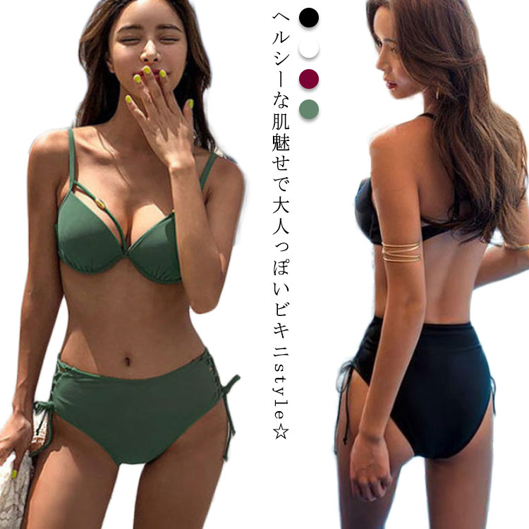 ビキニ 水着 シンプル ワイヤー入り レディースファッション 続々入荷中 ブラック ワインレッド ホワイト カーキ M L XL