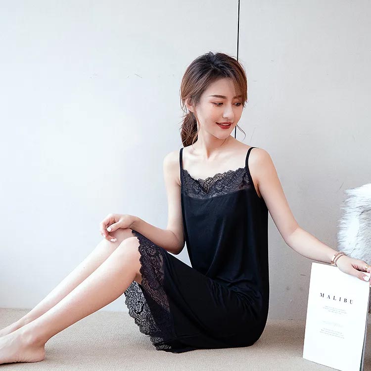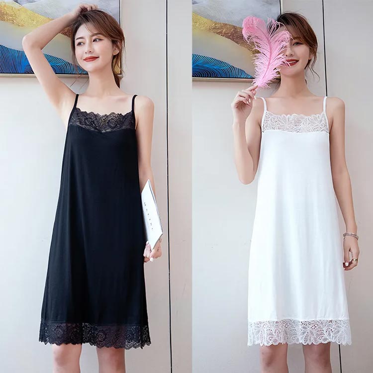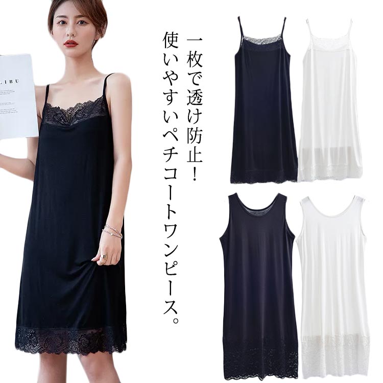 ロングキャミ ワンピース ペチコート インナー 下着 ナイトウエア 通販 A-ブラック A-ホワイト B-ブラック B-ホワイト XL 2XL 3XL