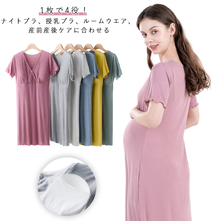 授乳パジャマ 半袖 育乳ナイトブラ マ マタニティ ママ マタニティウエア 授乳服 ワンピース 通販 ホワイト イエロー パープル ブルー ピンク バラレッド グレー グリーン M L XL XXL XXXL
