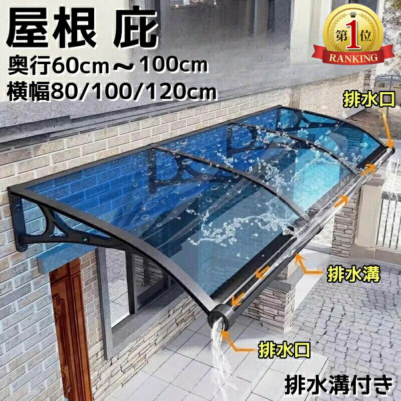ひさし 庇 シェード 屋根 屋根庇 日 透明 ブルー 茶色 グレー 60*80cm 60*100cm 60*120cm 80*100cm 80*120cm 100*100cm 100*120cm