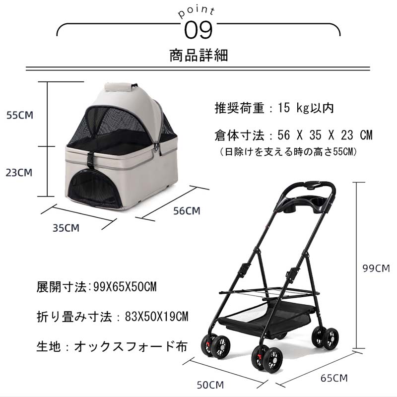 愛犬・愛猫のお散歩に便利なペット用カートです。