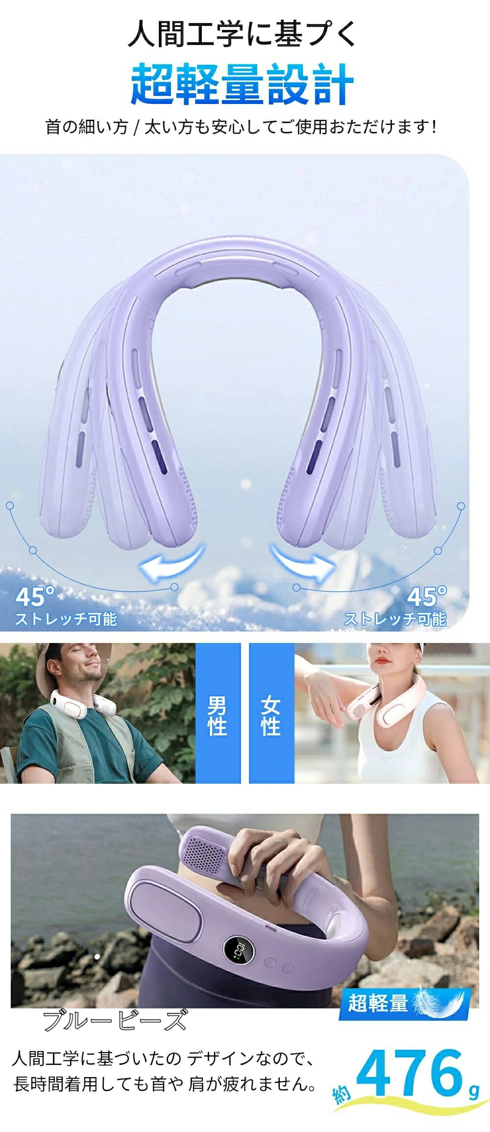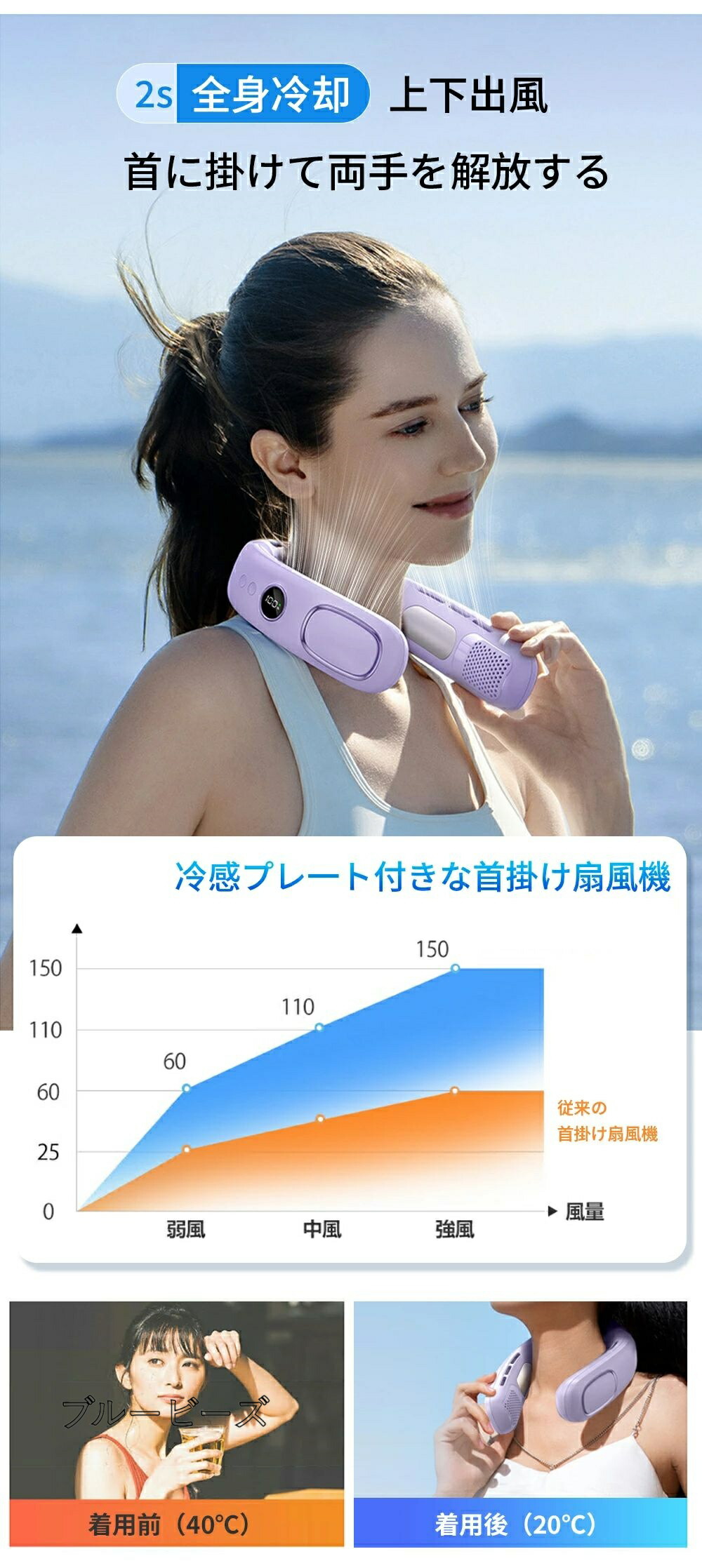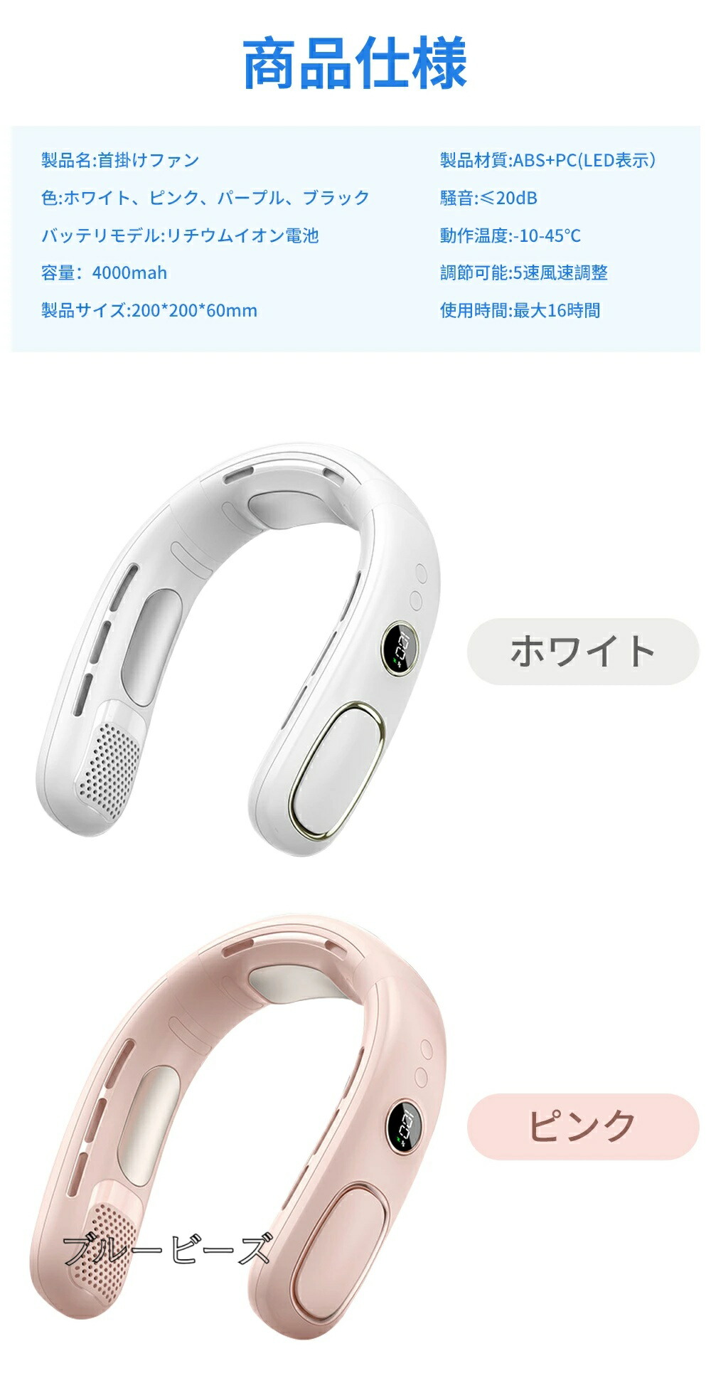 首掛け扇風機 ネッククーラー 冷却プレ ホワイト ピンク パープル ブラック