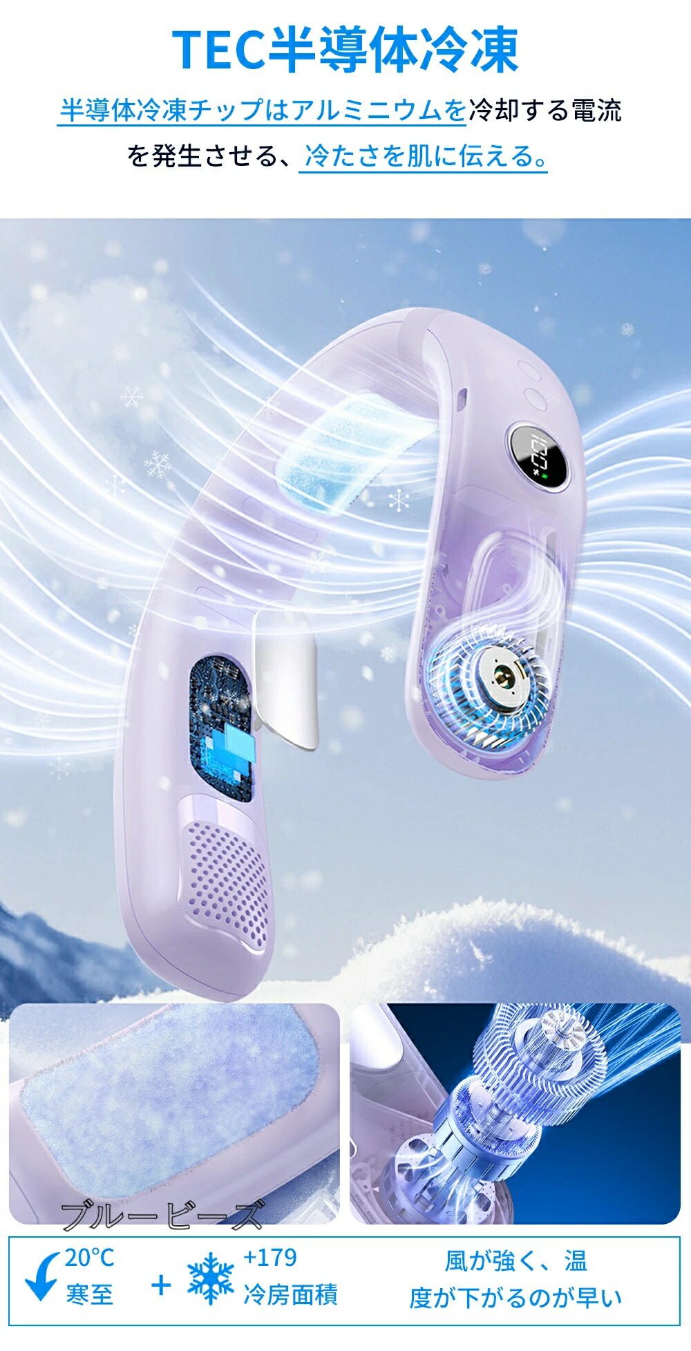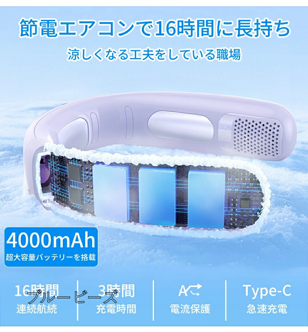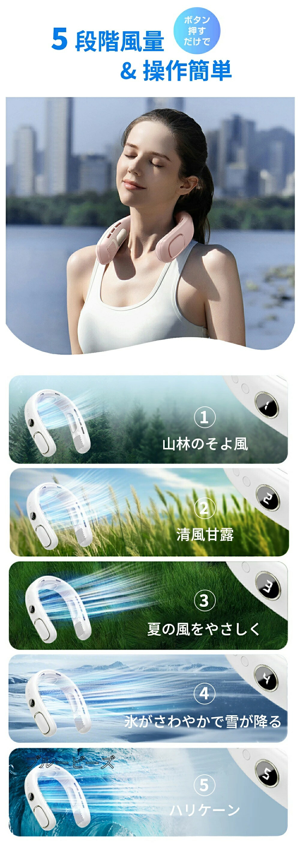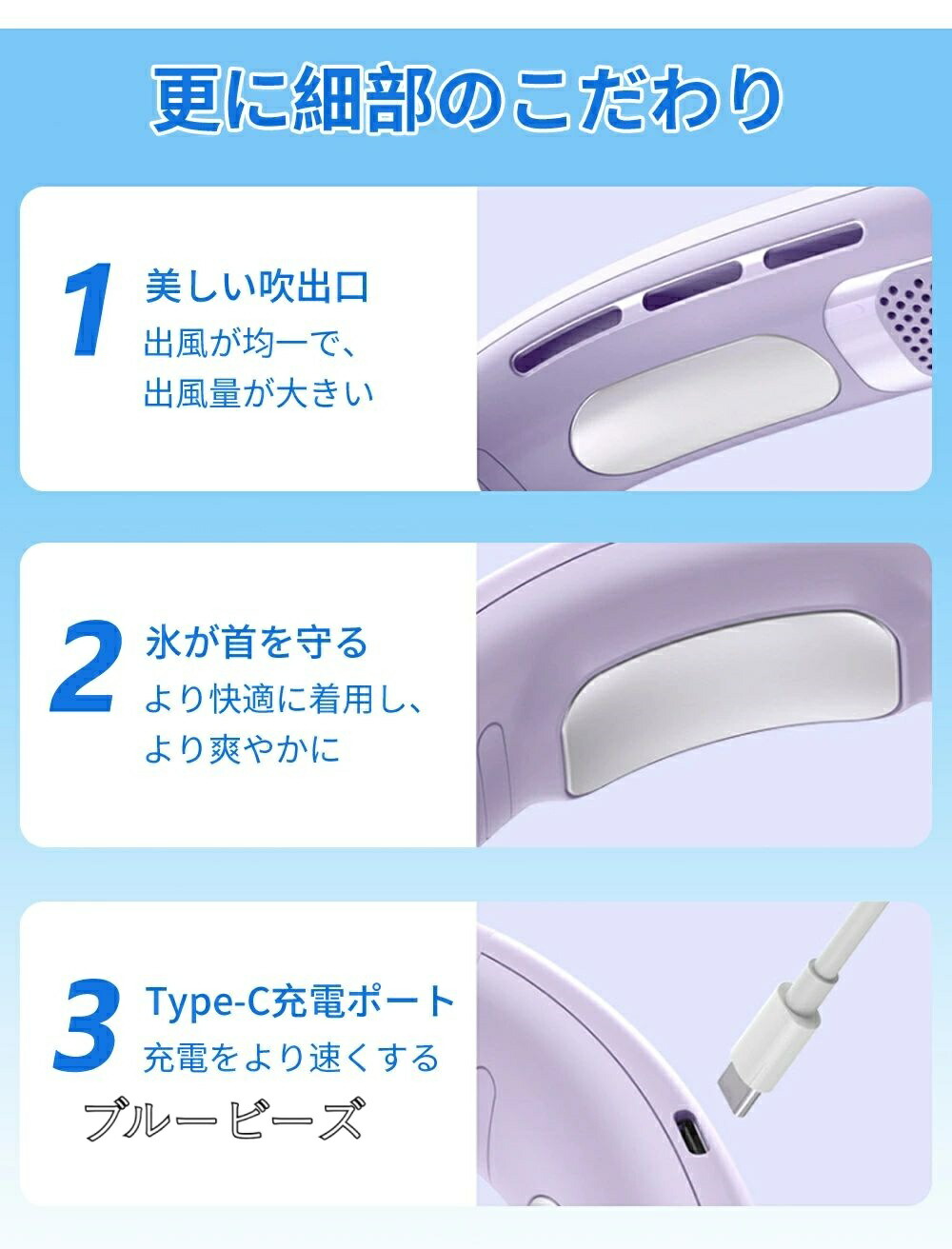 首掛け扇風機 ネッククーラー 冷却プレ ホワイト ピンク パープル ブラック