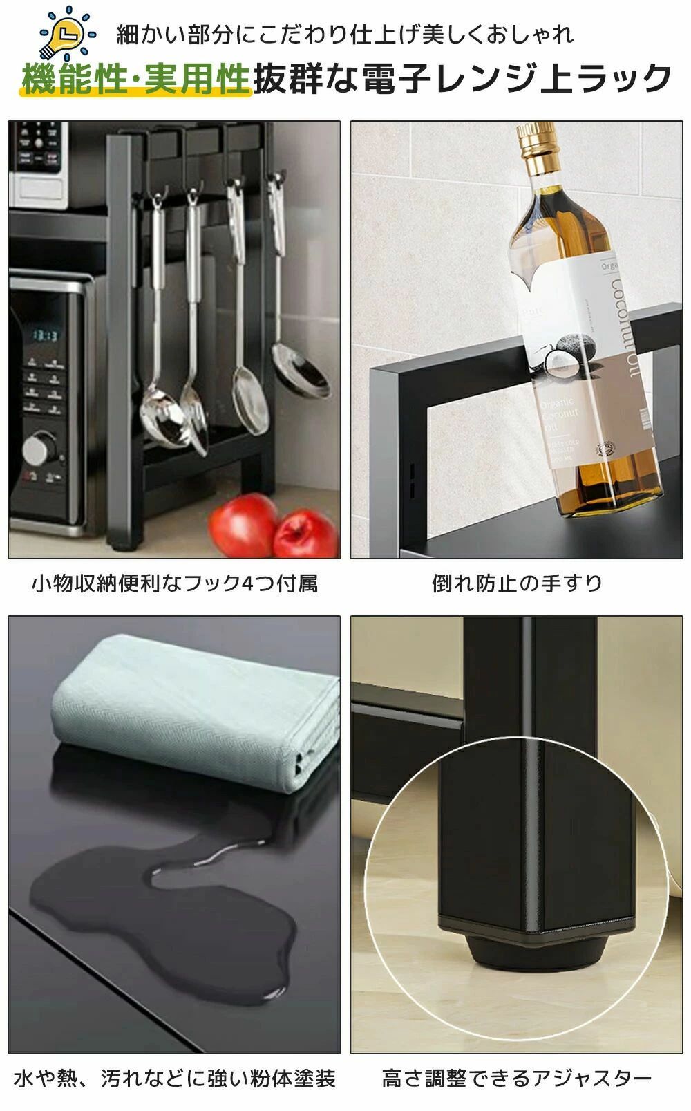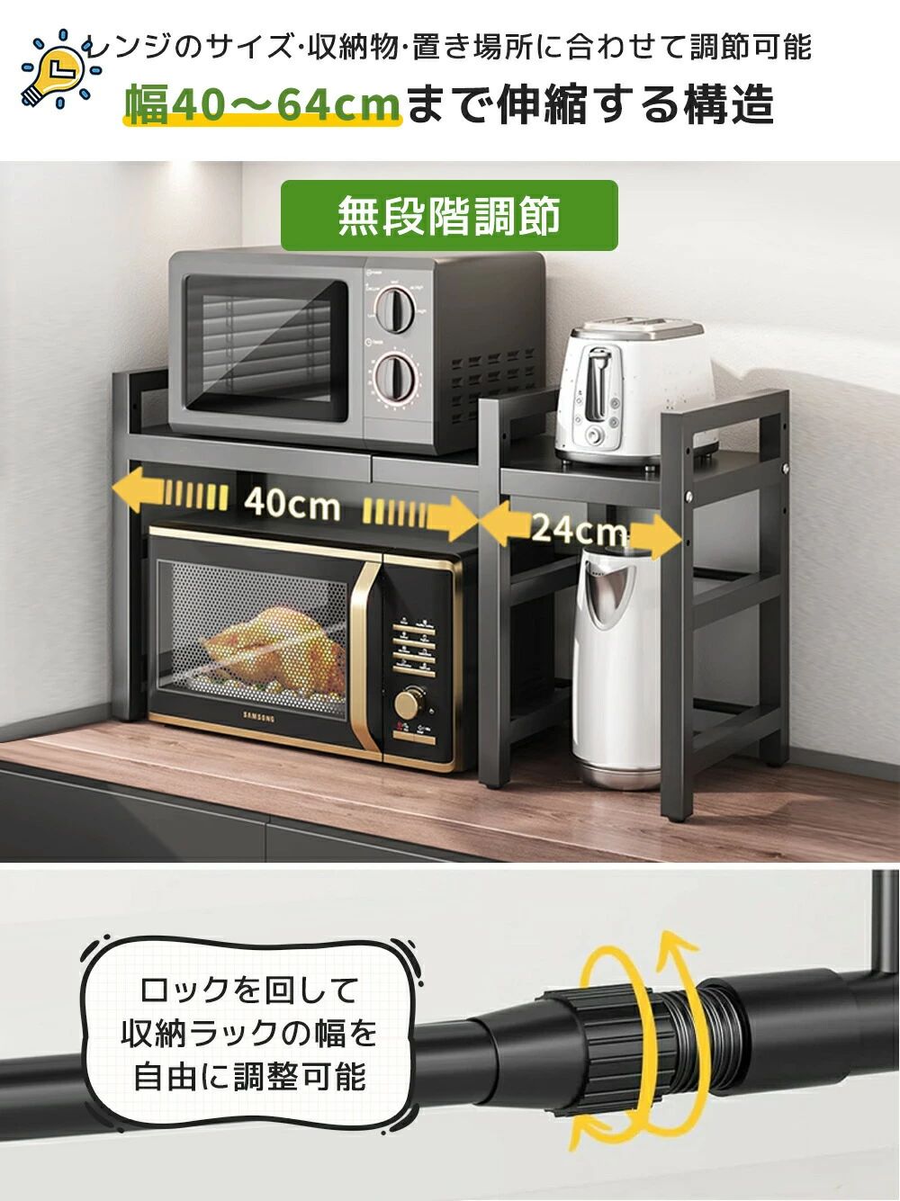 レンジ上ラック 伸縮タイプ 幅40~6 保存容器 調味料入れ オイルポット 新登場! なし 1本