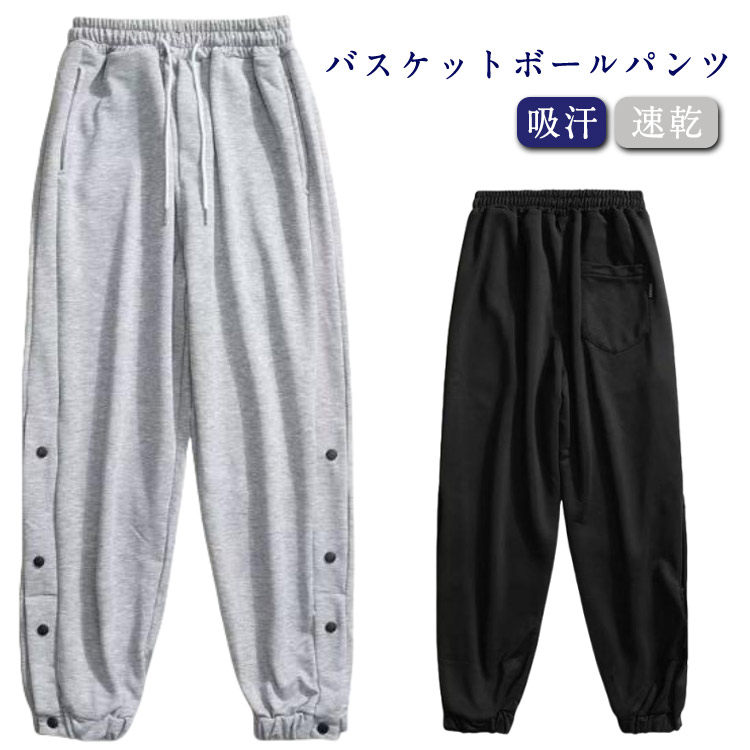 バスケットボールパンツ 裾ボタン ドラ グレー ブラック M(45-55kg) L(55-65kg) XL(65-75kg) 2XL(75-85kg) 3XL(85-95kg)