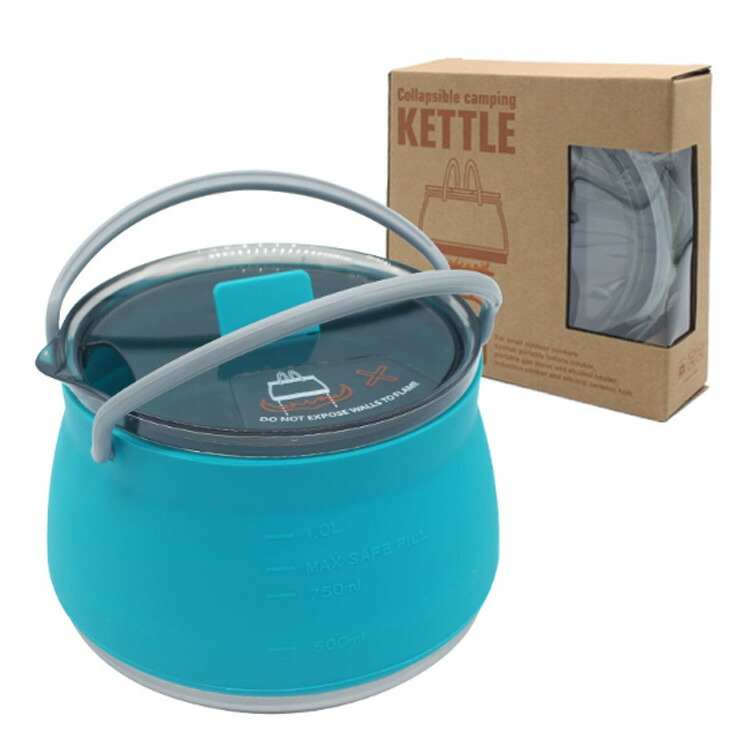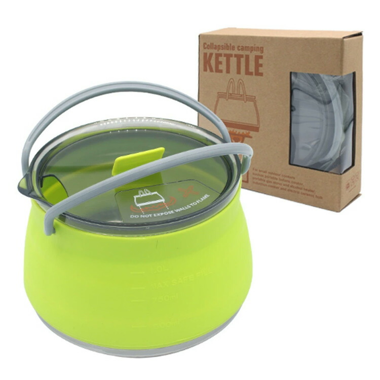 折りたたみケトル キャンプ アウトドア 大容量 1L キャンプ用やかん 折り畳み式やかん ウォーターポート アウトドア用の調理器具 携帯ポート シリコーン ポット 直火 IH対応 や ケトル