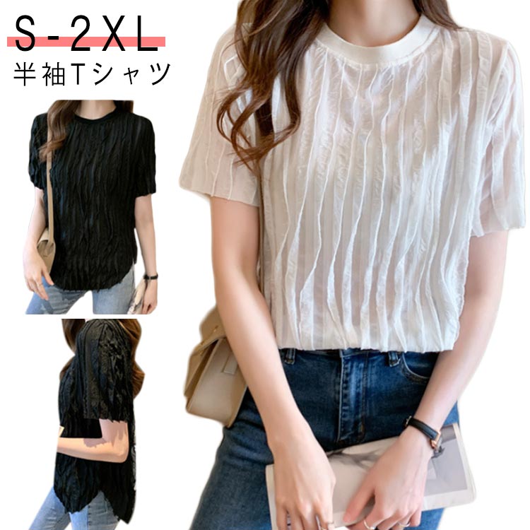 レディース Tシャツ トップス ジャカ トップス Tシャツ カットソー 人気 ホワイト ブラック S M L XL 2XL