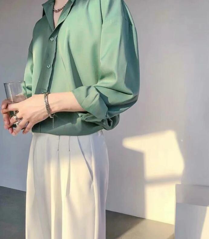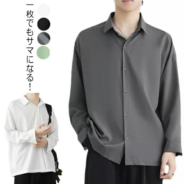 シャツ オフィスカジュアル とろみシャ メンズファッション 新作 ホワイト ブラック グレー グリーン M L XL 2XL 3XL