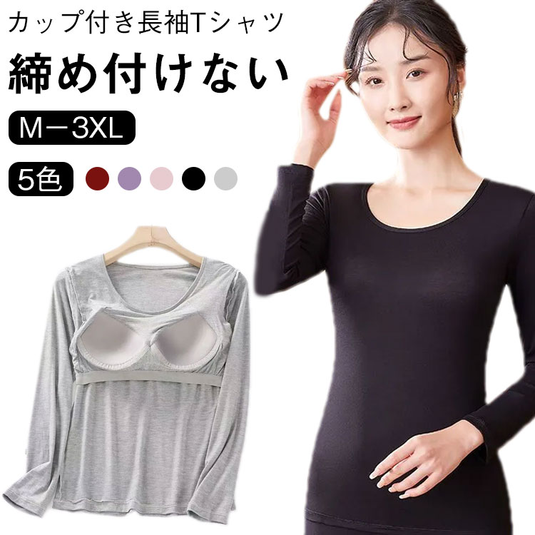 カップ付き インナー 長袖 ブラトップ インナー 下着 ナイトウエア 新登場! ブラック グレー レッド パープル ピンク M L XL 2XL 3XL