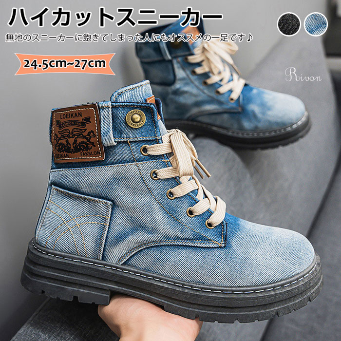 ハイカット スニーカー メンズ ジョギ 靴 早い者勝ち ブルー ブラック 39(内寸24.5cm) 40(内寸25cm) 41(内寸25.5cm) 42(内寸26cm) 43(内寸26.5cm) 44(内寸27cm) 45(内寸27.5cm) 46(内寸28cm) 47(内寸28.5cm) 48(内寸29cm)