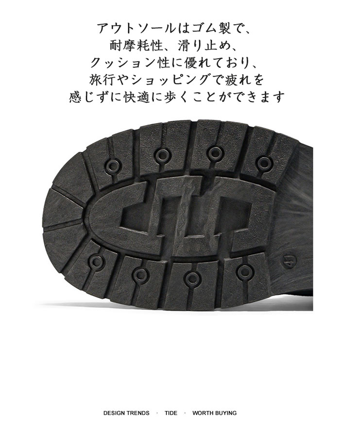 【滑りにくいソール】アウトソールはゴム製で、耐摩耗性、滑り止め、クッション性に優れており、旅行やショッピングで疲れを感じずに快適に歩くことができます。大幅に曲がっても折れない耐久性が優れています。底には滑りにくい凹凸があるので、濡れた道でも大丈夫です。このワークブーツは、柔らかいソールと低いヒールでグリップ力と衝撃吸収性が高く、柔軟で滑りにくいのが特徴です。