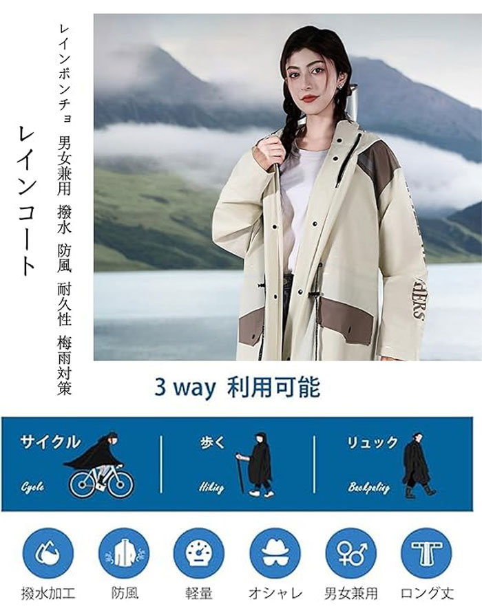 レインコート レディース 自転車 カッ レディースファッション 新作 カーキ パープル グレー グリーン M L XL