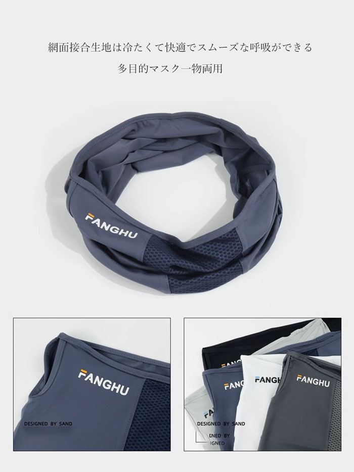 メンズ フェイスカバー 夏 冷感 日焼 ネイビーブルー ダークグレー ライトグレー ブラック