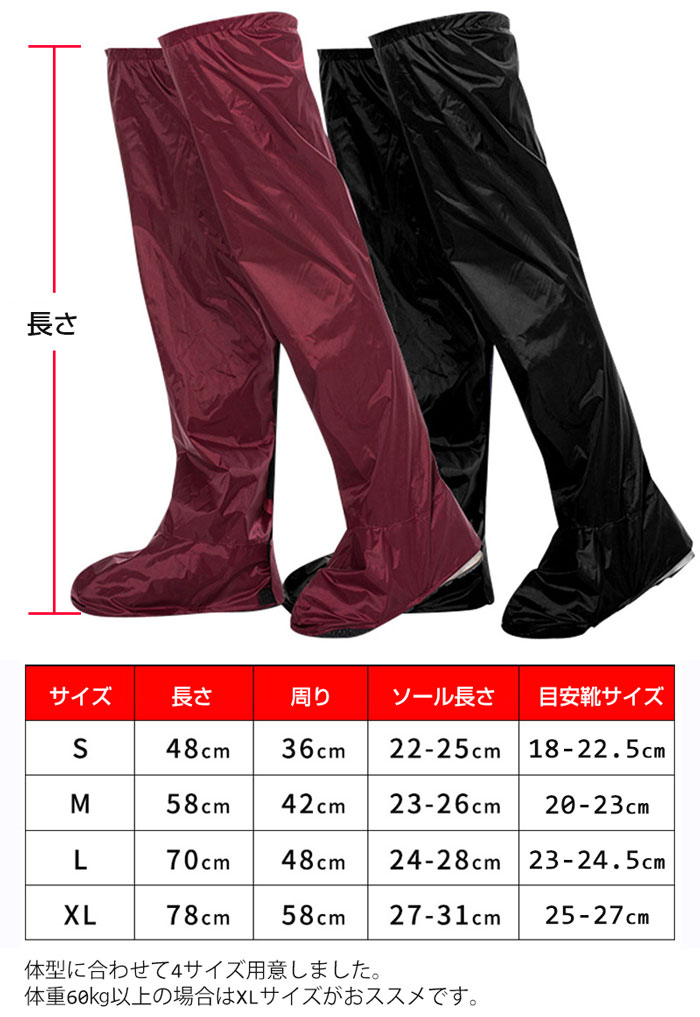 靴までカバー 雨よけレッグカバー 自転 アウトドア ウェア レインウェア その他 続々入荷中 ブラック ワインレッド S M L XL