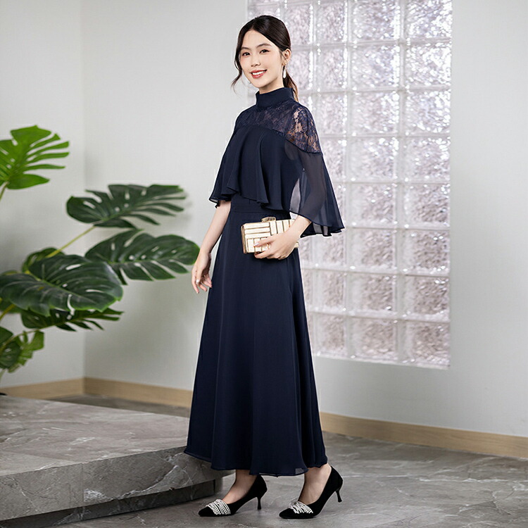 ケープ風 ハイネック パーティードレス ドレス 新登場! ネイビー ブラック グレー XS(SS) S M L XL(2L) 2XL(3L) 3XL(4L) オーダーメイド