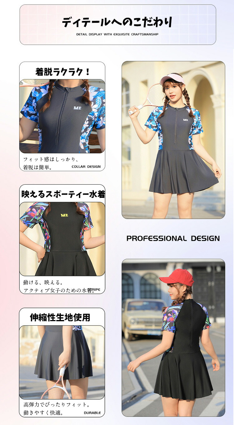 フィットネス水着 レディース ワンピー レディースファッション 新作 前ファスナー黒 後ろファスナー黒 4L(3XL) 5L(4XL)