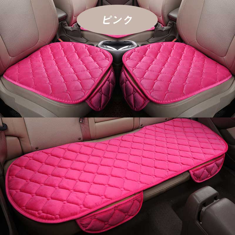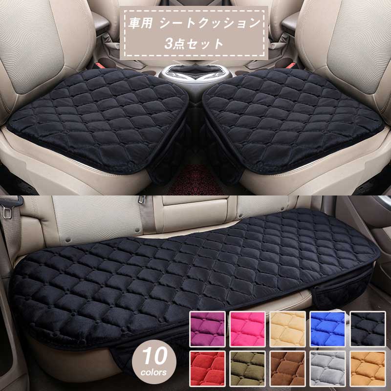 車用 シートクッション 3点セット ひ ブラック グリーン カーキ グレー コーヒー ブルー レッド パープル ピンク ベージュ