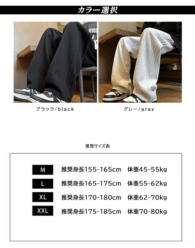 メンズ スウェットパンツ ワイド ゆっ ズボン パンツ 続々登場 ブラック グレー M L XL 2XL