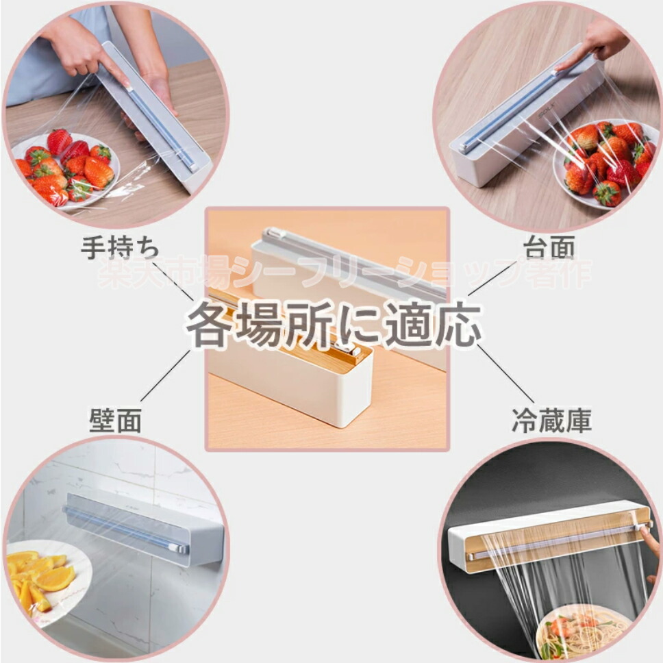 ラップケース ラップカッター ラップカ キッチン整理用品 冷蔵庫マグネット 新作 木目 グレー