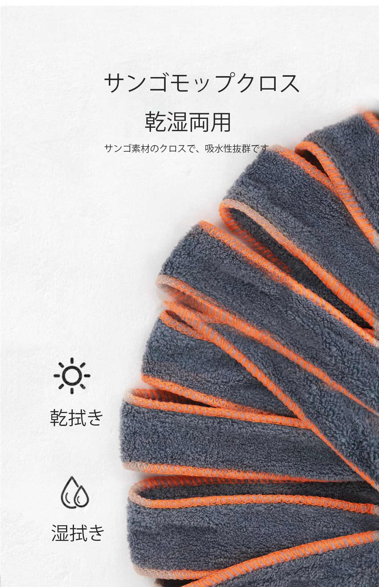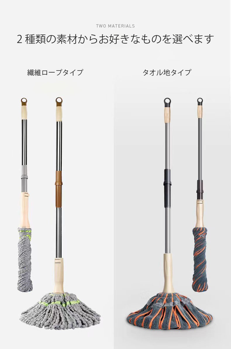 モップ フロアモップ|乾湿両用 絞れる 掃除用品 モップ 特集 ピンク オレンジ ブルー ネイビー グレー グリーン タオル地タイプ 繊維ロープタイプ