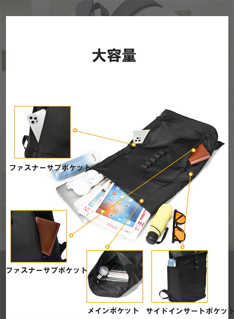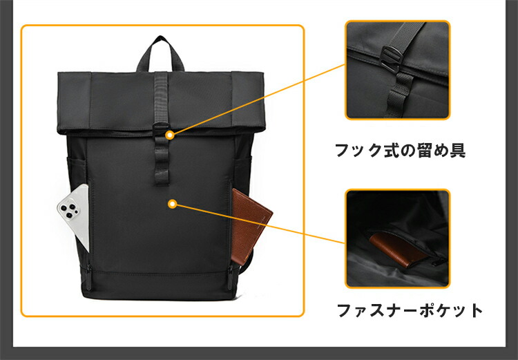 ビジネスリュック ロールトップ 防水 バッグ 小物 ブランド雑貨 特集 ブラック グレー ブラック+グレー
