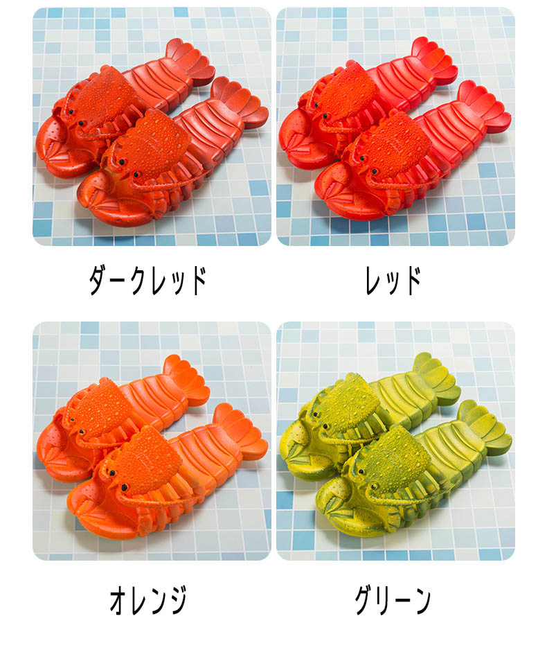 ロブスター スリッパー サンダル バス 生活雑貨 スリッパ ルームシューズ スリッパ 通販 レッド ダークレッド オレンジ グリーン 17cm 18cm 19cm 20cm 21cm 22cm 23cm 24cm 25cm 26cm 27cm