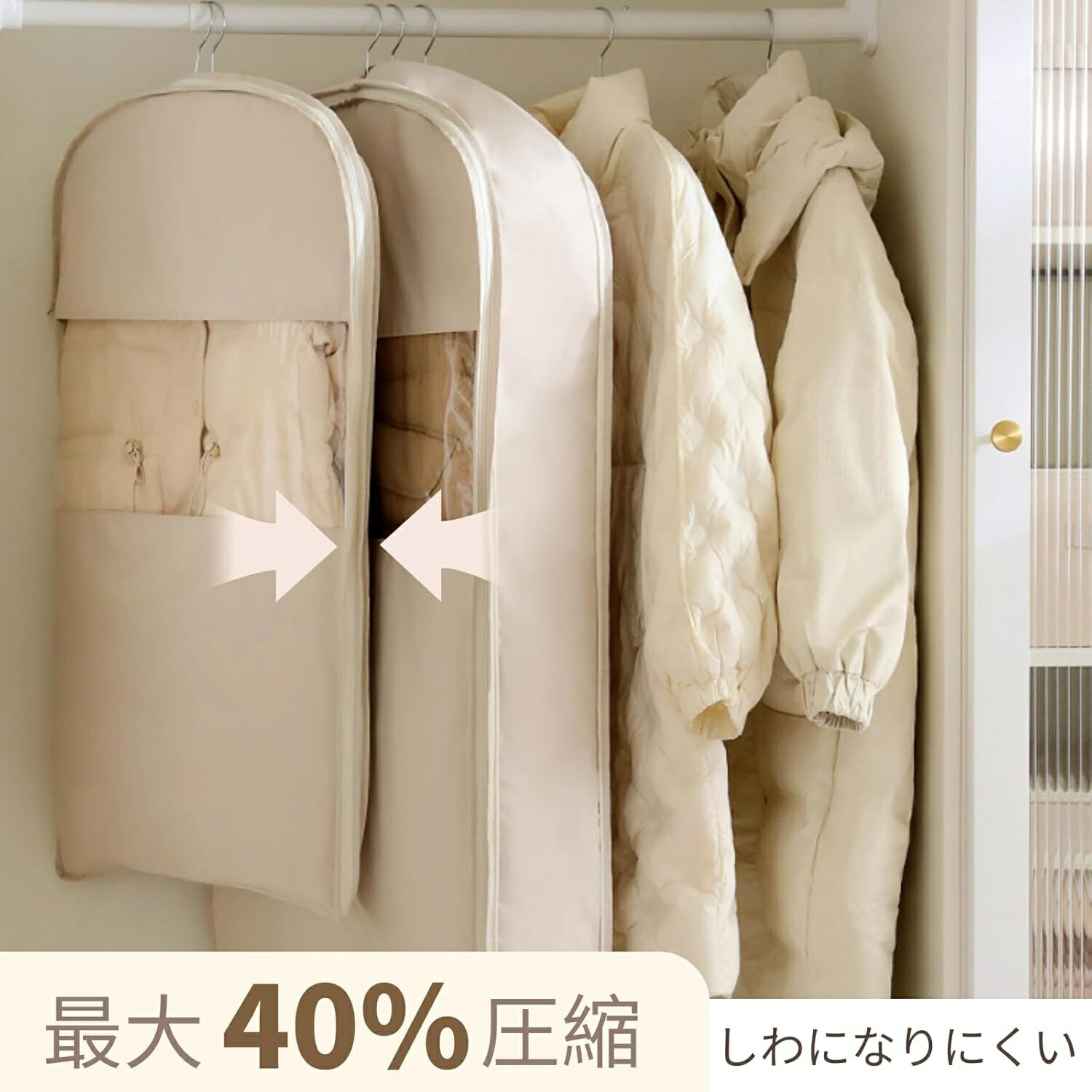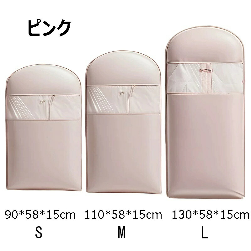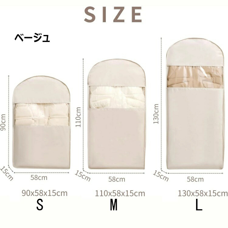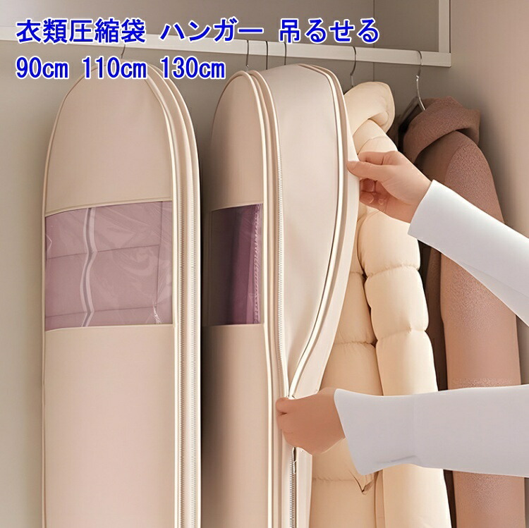 衣類圧縮袋 吊るせる圧縮袋 掃除機不要 ベージュ ピンク S(90×58×15cm) M(110×58×15cm) L(130×58×15cm) S+M S+L M+L