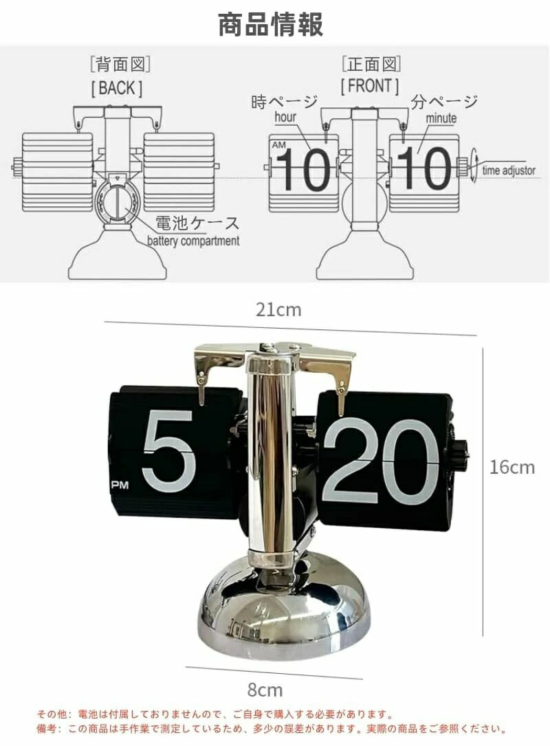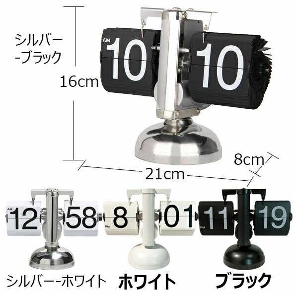 置き時計 フリップクロック 電池式 レ ブラック 12時間制 ホワイト 12時間制 シルバー黒 12時間制 シルバー白 12時間制 ブラック 24時間制 ホワイト 24時間制 シルバー黒 24時間制 シルバー白 24時間制