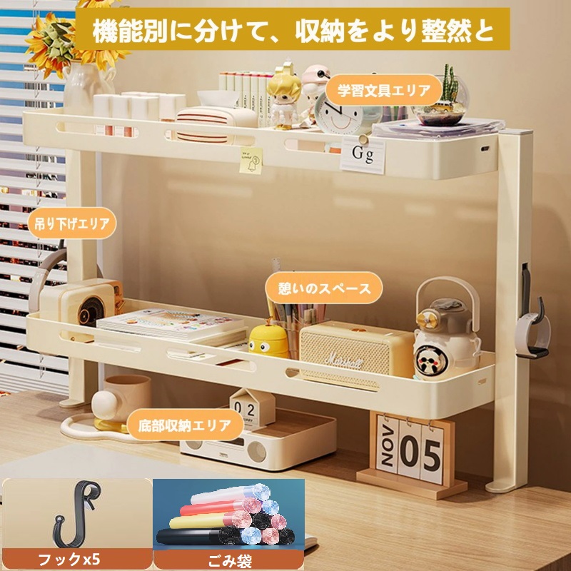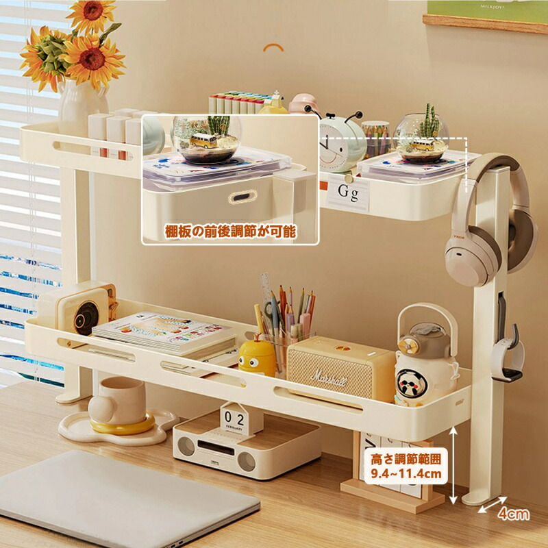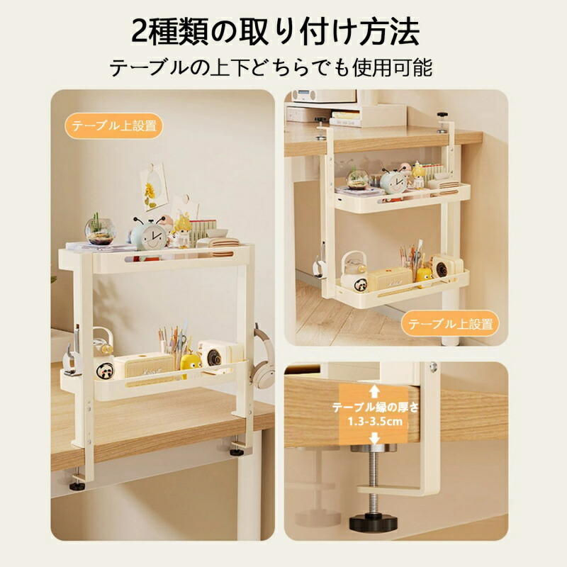 デスク上置棚 机上本棚 クランプ式 小 ホワイト ブラック 幅40cm 幅50cm 幅60cm