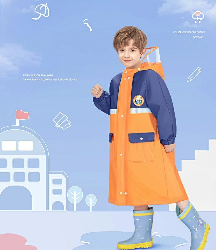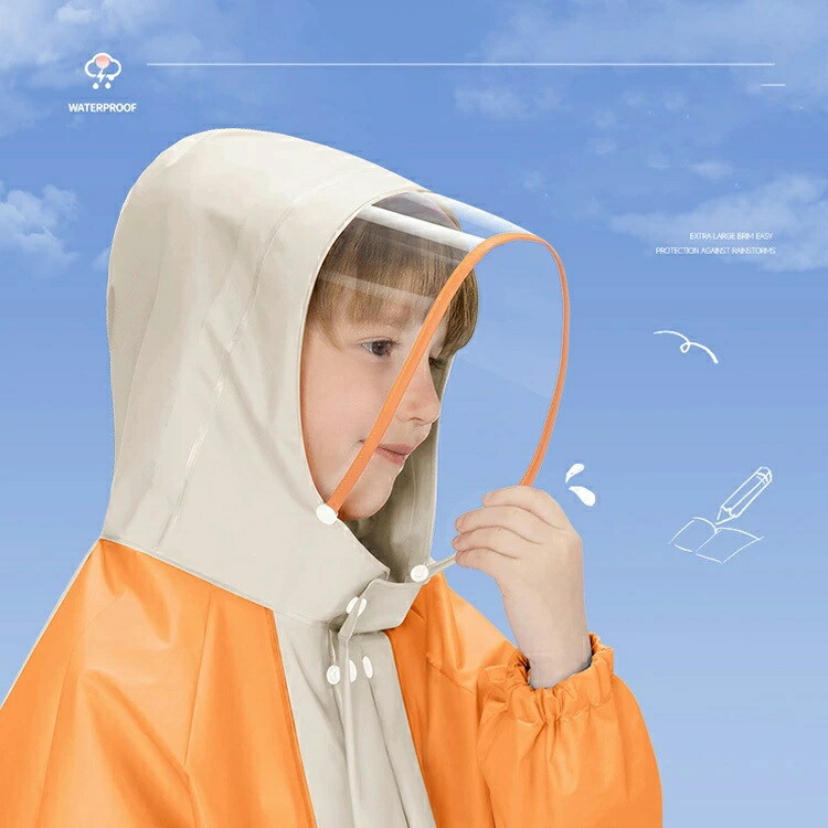 レインコート キッズ ランドセル対応 キッズ レインウェア 傘 レインコート 通販 オレンジ/ベージュ ピンク/パープル ブルー オレンジ/ブルー L XL 2XL 3XL