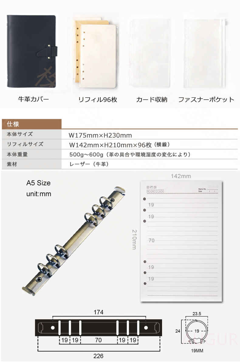 システム手帳 本革ノート A5サイズ 日用品雑貨 文房具 手芸 新登場! BLACK COFFEE BROWN GREEN BLUE RED PURPLE