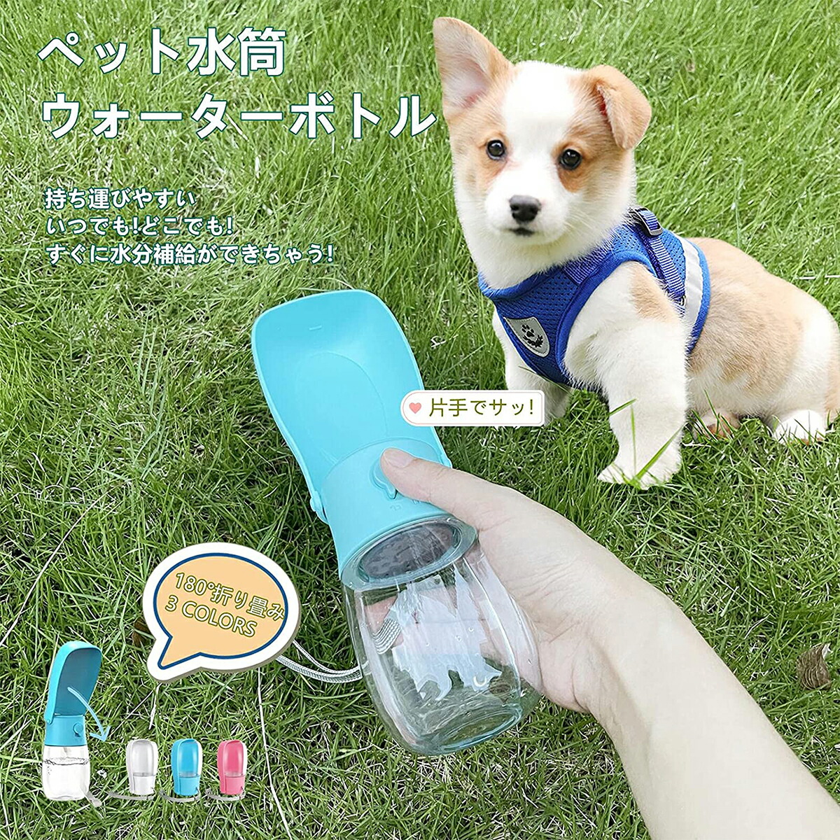 ペットウォーターボトル 300ml 犬 犬用品 お出かけ お散歩グッズ 携帯水筒 特集 ホワイト ブルー ピンク