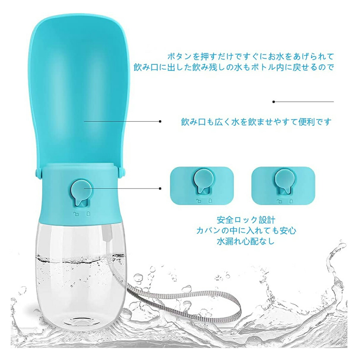 ペットウォーターボトル 300ml 犬 犬用品 お出かけ お散歩グッズ 携帯水筒 特集 ホワイト ブルー ピンク