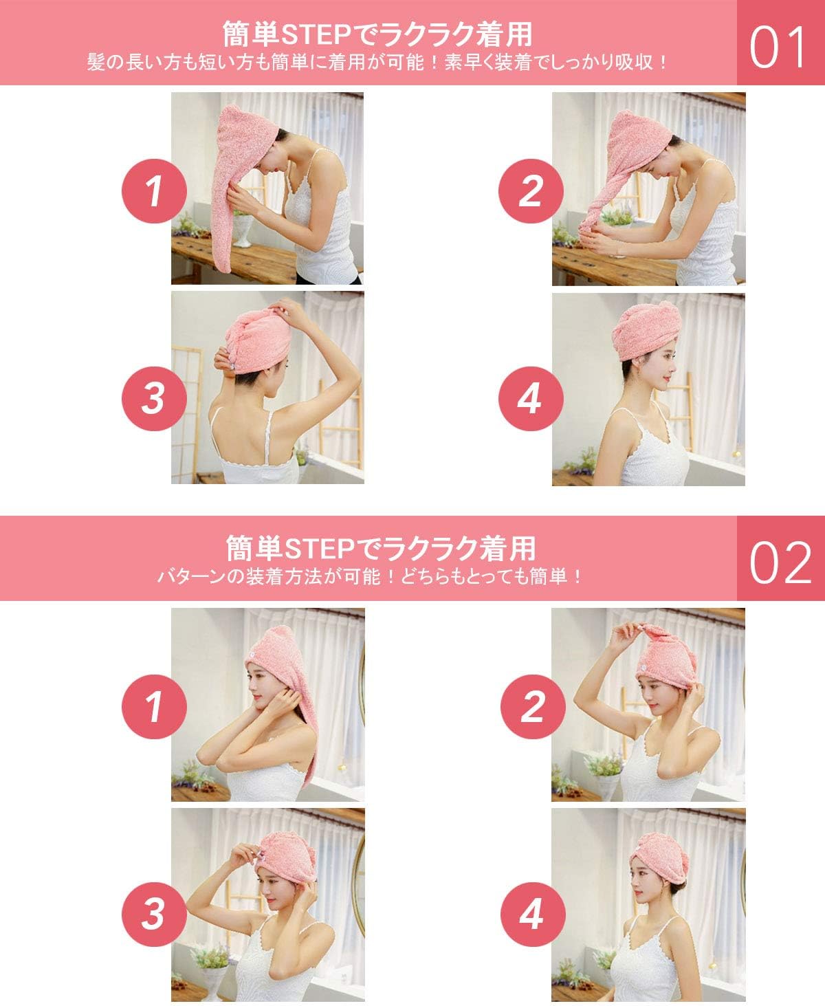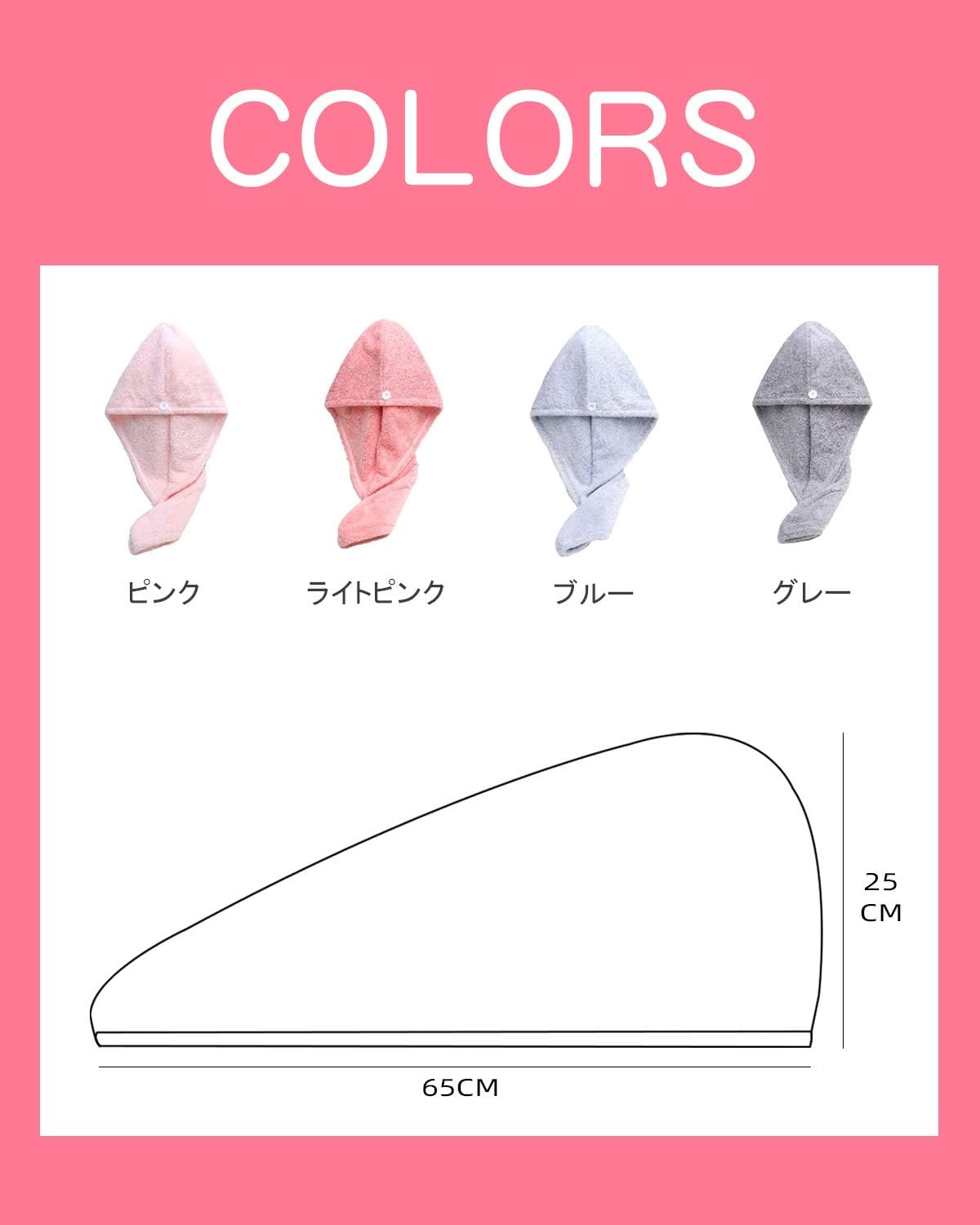 ヘアドライタオル ドライキャップ 速乾 ピンク+水色 グレー+頬紅赤