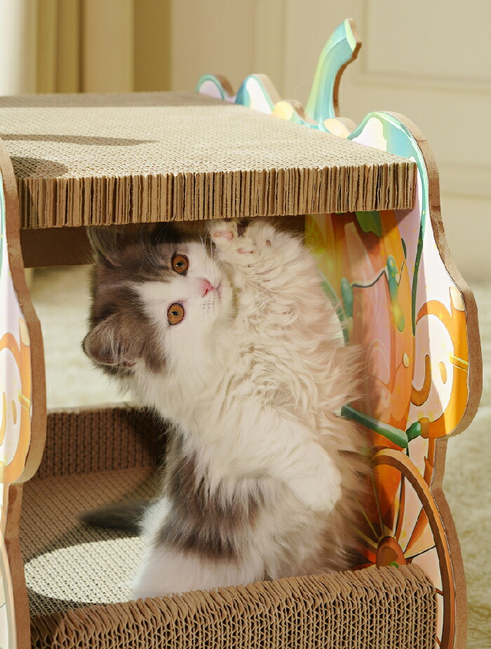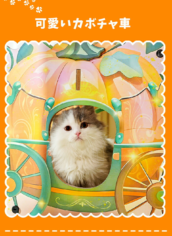 かわいいデザイン:ユニークな南瓜車の外観は猫ちゃんを引き付けるだけでなく、家庭のインテリアに可愛さと活気を加え、目を引く装飾となります。