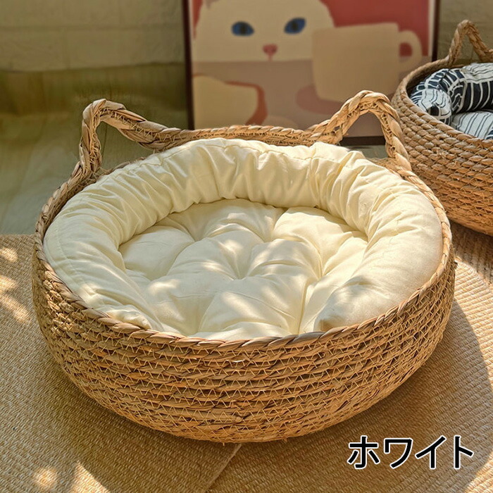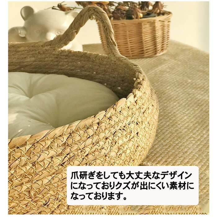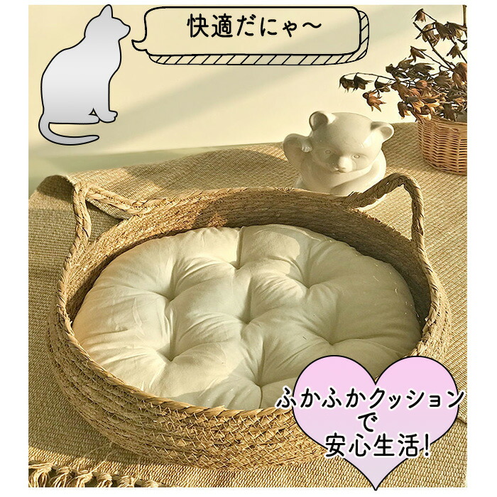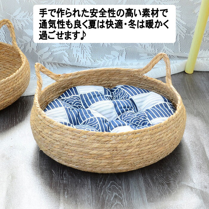 手編みの猫ベッドで通気性抜群。通気性がよく夏には涼しく・冬には暖かく過ごせます。どの季節にも使用可能!