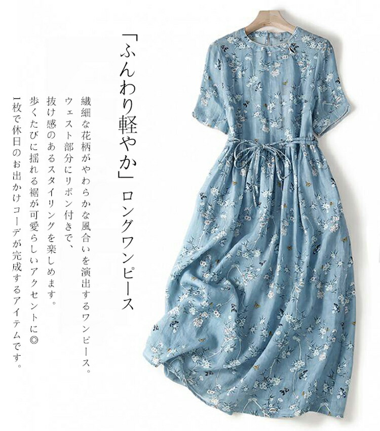 ロングワンピース レディース 夏 半袖 M L XL 2XL